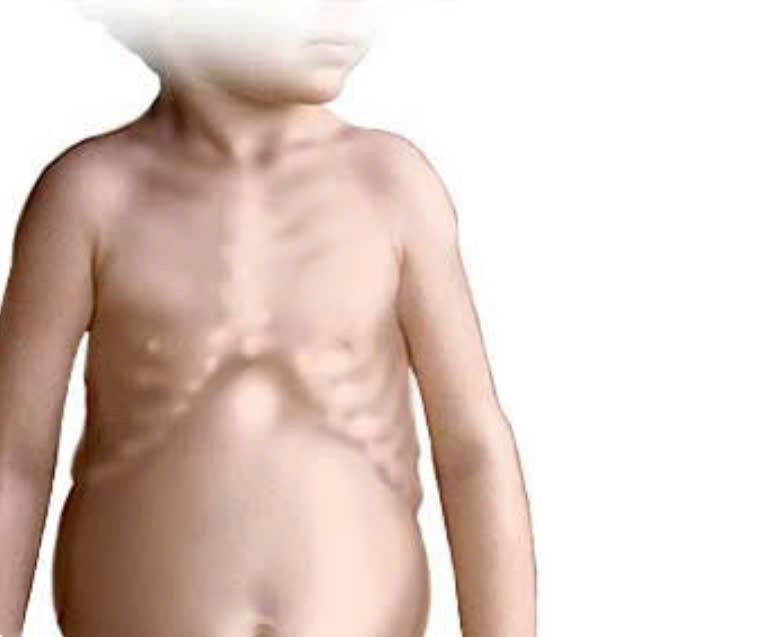 Biến dạng xương: Xương sọ mềm, đầu bẹt hoặc méo, xương sườn lồi.